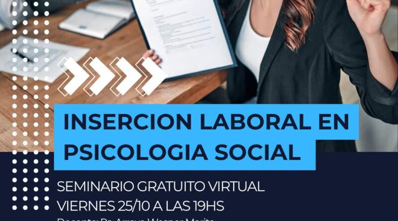 Read more📚 SEMINARIO GRATUITO – INSERCIÓN LABORAL EN PSICOLOGÍA SOCIAL 📅 Viernes 25 de Octubre – 19 hs📺 Transmisión por Facebook